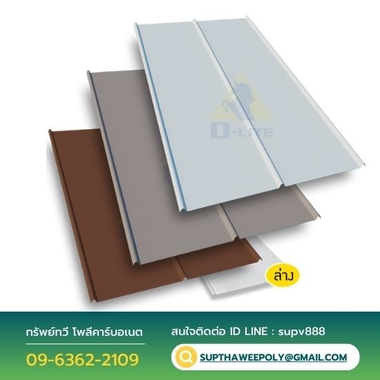 ดีไลท์ (D-Lite) ลอนคลื่น - ร้านทรัพย์ทวีโพลีคาร์บอเนต กันสาดดีไลท์ (D-LITE) ลอนคลื่น มีให้เลือก 8 สี เป็นวัสดุที่ให้แสงสว่างธรรมชาติส่องผ่านเข้าสู่ภายในบ้าน หรืออาคาร พร้อมเพิ่มความสวยงามและทันสมัยในบริเวณที่ต้อง การเช่น กันสาดหน้าบ้าน โรงจอดรถ กันสาดหลังบ้าน ข้อควรระวังการติดตั้งให้ถูกวิธี : ให้เอาด้านที่มีตัวอักษรสกีนเลเซอร์ ลงด้านล่าง "ไม่รั่ว ไม่ร้อน สะท้อน UV มีมาตรฐาน " สนใจกันสาดดีไลท์ ติดต่อตัวแทนจำหน่ายมาตรฐาน โฮมพลัสแมททีเรียล ร้านทรัพย์ทวีโพลีคาร์บอเนต 159/7 หมู่ 3 ตำบลบางรักพัฒนา อำเภอบางบัวทอง จังหวัดนนทบุรี 11110 โทรศัพท์ : 02-920-7945, 084-4273754 ( คุณฝน)